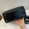 A sleek, feminine style from the iconic brand, the Dior Lady Dior Lambskin Medium features the hallmark soft geometric quilted leather topstitched with the iconic Cannage in black. The gold signature D.I.O.R. metal jewelry charms embellish it with feminine elegance, while the sturdy top handles with a long detachable strap make it versatile.