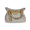 The Louis Vuitton Evora MM in Damier Azur is a stylish and functional tote made from its signature Damier coated canvas. It features a vachetta leather trim, flat and leather handles, and an optional, adjustable and detachable shoulder strap with gold-tone hardware.