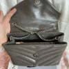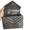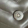This Saint Laurent Loulou Matelassé "Y" Chain Satchel is a fierce fashion statement for the fashion-forward. This stunning bag features smooth leather with the signature interlaced YSL monogram detail in silver hardware on the front flap. The interior features two compartments separated by a zippered pouch as well as a one card slot, with plenty of room for all of your essentials. Add a bold edge to your most basic outfit with this flexibly structured classic Saint Laurent!