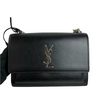 This Yves Saint Laurent Medium Sunset Bag in black is a timelessly elegant style that will transcend seasons and pair beautifully with any ensemble. Crafted from smooth calfskin leather, this luxurious design features a classic, structured shape with a spacious interior and a sliding strap that can be worn cross-body or shortened on the shoulder. A leather-encased key ring and the YSL monogram accent create a signature heritage aesthetic.
