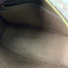 It carries a Very Good condition rating. It shows signs of wear throughout with some wrinkling of the material. The handles, strap, and strap loop leather attachment is in excellent condition. Some hairline scratches can be seen throughout.