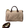 The Speedy Monogram Mini Linh Bandouliere 30 features a monogram fabric body, rolled vachetta leather handles, a detachable flat strap, and 2 way top zip closure.