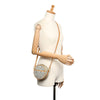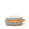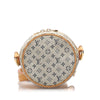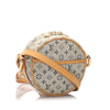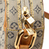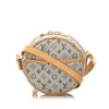 The Louis Vuitton Mini Jeanne PM features a canvas body, a front exterior slip pocket, an adjustable flat shoulder strap, and a top zip closure.