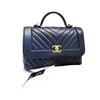 100% Authentic: Chanel Navy Blue Chevron Top Handle Flap Bag