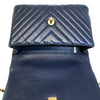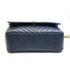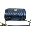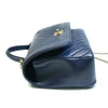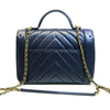Navy Blue Chevron Top Handle Flap in Calfskin Leather