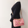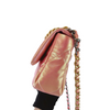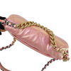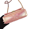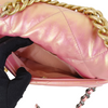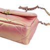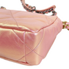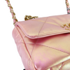 This Chanel 19 Flap Bag has just the right space to add all your needed stuff. Adorned with a beautiful quilted iridescent pink leather, this bag also comes with gold, silver, and ruthenium hardware. It features classic diamond quilting, chain CC logo turn-lock, a full-length back pocket with magnetic closure for extra storage, a chain top handle, shoulder, and crossbody strap with leather padding. It also has an interior rear zipper pocket.