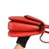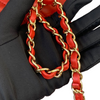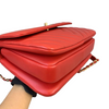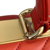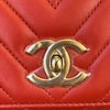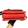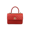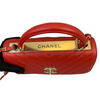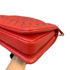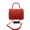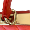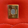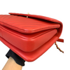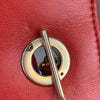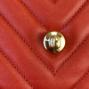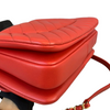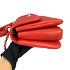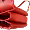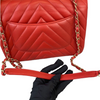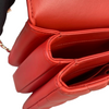 This Chanel Small Trendy CC Flap Lambskin Chevron Quilted in a coral red is a stunning piece. It features a lambskin leather exterior, a leather top handle, and a chain and leather strap. This beauty can be worn as a top handle, or a shoulder bag.