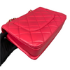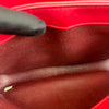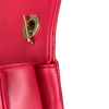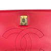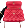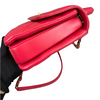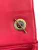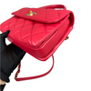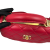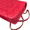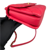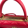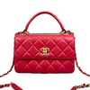 This Chanel Small Trendy CC Flap bag is crafted of lambskin leather with rEd diamond quilting. It features a reinforced leather top handle with gold links and a Chanel CC logo on the front flap. It has a gold chain leather-threaded strap with a shoulder pad.