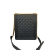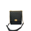 This Verticle North-South Boy Chanel bag features beautiful quilted caviar and gold hardware. This bag can be worn either as a shoulder or a crossbody bag.