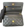 The Chanel Quilted Wallet on Chain is the perfect complement to your outfit. It is crafted of luxuriously soft diamond quilted lambskin leather in black and features gold hardware CC detailing, and a leather-threaded gold chain-link shoulder strap.