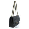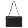 This gorgeous Chanel Double Flap Caviar Medium Black GHW features a woven strap, an exterior back slip pocket, and gold-tone hardware. It has a double flap and frontal gold CC turn-lock closure . Perfect for an owner who appreciates a vintage leather piece.
