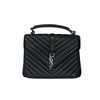 This versatile shoulder bag features the iconic YSL logo on the front and has been marvelously designed with chevron quilted leather. The bag features a long chain strap, a short satchel handle, and a slip pocket. The interior is perfect for holding all your essentials.