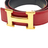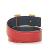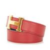The Constance Belt features a flat leather waist strap and a gold-tone buckle.