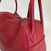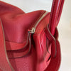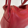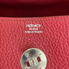 A nod to the Lindy Hop, a famous American street dance from the 1920s, this Hermes Lindy 30 Shoulder Bag Rouge Garance is constructed from soft Clemence leather and offers a unique design. The handles are located on the small side, which fold the faces of the bag, giving it its oh-so atypical shape and hugs the curves of the body. An ode to material and upbeat tribute to the Year of Dance, the Lindy bag moves and grooves intensely.