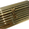 This is an authentic Saint Laurent Opium Box Ribbed Plexiglass Lambskin Fringe in Gold. This clutch is crafted of ribbed plexiglass. This bag features black fringe on each side of the bag and a prominent polished gold YSL monogram logo in the front. The flap opens to a matching leather interior.