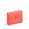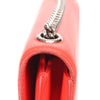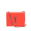 The YSL Monogram Kate Leather Crossbody Bag Orange features a leather body, a front flap with the iconic YSL logo done in metal. It offers a magnetic closure, silver-tone chain, and an interior slip pocket.