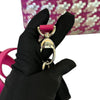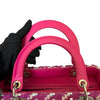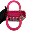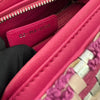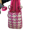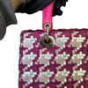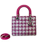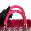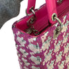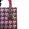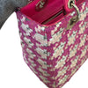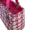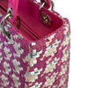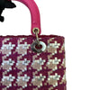 This is an authentic Christian Dior Lady Dior Medium Tweed in Silver Pink. The bag is uniquely structured of tweed. The bag features pink leather top handles with silver links, a shoulder strap and signature Dior initials charm. The top zips open to a pink leather interior with a zipper pocket.