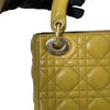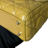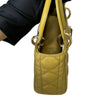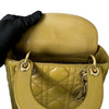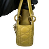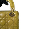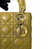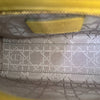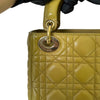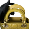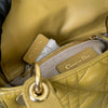 This is an authentic Christian Dior Mini Lady Dior Lambskin in Ginger. It’s made of lambskin leather. The bag features leather top handles, a leather shoulder strap along with a charming “Dior” letters pendant. The top is secured by an interior flap, and the bag opens to reveal a grey Dior logo-jacquard fabric with a zipper pocket.
