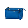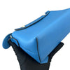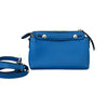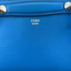 This is an authentic Fendi Calfskin Mini By The Way in Blue. This bag is made of calfskin leather. This bag has leather handles adorned with silver cone studs and a cross-body shoulder strap with adjustable silver clasps. Its overextending top zipper reveals a black monogram fabric interior.