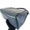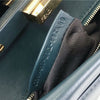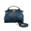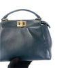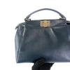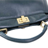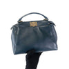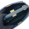 This Mini Fendi Peekaboo Iconic features a green leather body, a flat leather handle, an open top with a twist closure, and an interior zip closure.