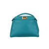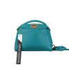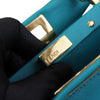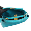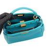 The Fendi Peekaboo Mini is luxuriously crafted using Nappa leather in turquoise. This tote features a sturdy, reinforced leather handle with gold hardware links and turn lock. The bag can be worn as a cross-body shoulder bag, or as a tote bag. Will surely complement any day-to-night look!
