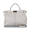 This Fendi Peekaboo features a leather body, a flat leather handle, a detachable flat leather strap, an open top with twist closure, and an interior zip closure.