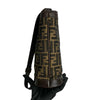 This Fendi Zucca tote bag features a canvas body, a flat leather straps, and an open top.
