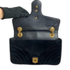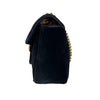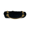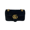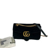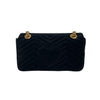 The small GG Marmont bag has a softly structured shape and a flap closure with Double G hardware. The sliding chain strap can be worn multiple ways, changing between a shoulder and a top handle bag. Made in matelassé chevron velvet with the iconic heart on the back.