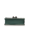 This Gucci GG monogram velvet shoulder bag is finely crafted in blue-green with pink stitching. This bag features an aged silver chain looping shoulder strap and a tiger head horseshoe closure with gems. This shoulder bag opens to a teal satin fabric and green leather with a frontal patch pocket. This is a remarkable shoulder bag for everyday essentials with the style and sophistication from Gucci!