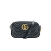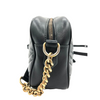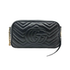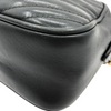 The Marmont Camera Bag bag features a quilted leather body, a gold toned chain strap, and a top zip closure.