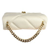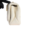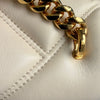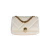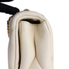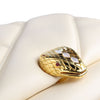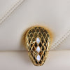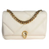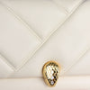 This is an authentic Bvlgari Serpenti Cabochon Small Crossbody Calfskin in Ivory. This bag is made of quilted calfskin leather and features a front flap with a snake head closure and a gold chain shoulder strap. The flap opens to a black leather interior with zipper and patch pockets.