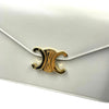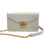 This is an authentic Celine Triomphe Wallet on Chain WOC in Smooth Calfskin in Off White. This chic shoulder bag is crafted of smooth calfskin leather. The bag features a gold chain shoulder strap with a leather shoulder pad, and a gold decorative snap on the crossover flap. This bag opens to a matching leather interior with a card slots and patch pocket.