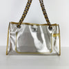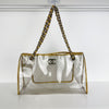 The Chanel Carryall Large Shopper Tote Bag is crafted from clear PVC with Gold leather trim. It features leather-threaded gold chain-link shoulder straps. This bag’s roomy interior makes it perfect for work, shopping, and even your day or night socials. Be Practical and yet stylish in Chanel!