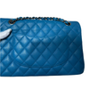 Classic Double Flap Matte Caviar Medium Blue SHW
