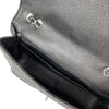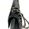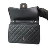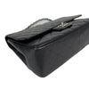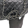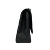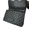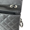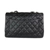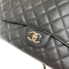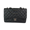 This Chanel Classic Single Flap Jumbo bag is crafted of diamond quilted caviar leather in black. It features leather threaded polished silver chain link shoulder straps, an exterior rear flat pocket and a front flap with a silver CC turn lock. This is a perfect shoulder bag for all occasions, from Chanel!