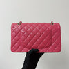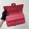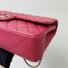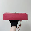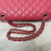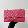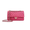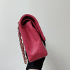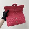 This Chanel Classic Medium Double Flap bag is crafted in diamond-quilted pink caviar leather featuring a CC turn-lock and chain in silver hardware.