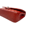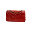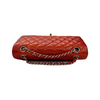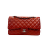 This Medium Sized Chanel classic flap bag is made from diamond quilted lambskin leather in red and features silver chain-link leather-threaded shoulder straps and a front flap with a silver CC turn lock.