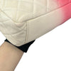 This is an authentic Chanel Flap Ombre Caviar Leather in White and Rose Pink. This chic bag is made of ombre caviar leather. The shoulder bag is complemented by polished silver hardware which includes rose colored leather threaded shoulder chains and a silver CC turn lock on the front flap. This opens to a matching rose colored fabric interior with a zipper pocket.