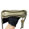 This is an authentic Chanel Gabrielle Hobo Small Metallic Pale Calfskin in Gold. This chic shoulder bag is featured in diamond stitched aged calfskin leather in metallic gold with a sturdy smooth matching calfskin base. The cross body bag features thin gold, silver, and ruthenium chain link leather threaded shoulder straps with a shoulder pad. The top zipper opens to a spacious fabric interior with zipper and patch pockets.