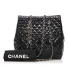 This Chanel Matelasse Patent Leather Shoulder bag in Black features a patent leather body, curb chain straps, an open top, and interior zip and slip pockets.