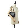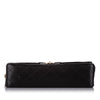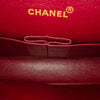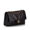 This shoulder bag features a quilted lambskin body, a back exterior slip pocket, leather woven chain handles, double front flaps with interlocking Cs and a twist lock closure, and an interior slip pockets.