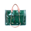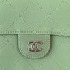 This Chanel Medium Coco Splash tote bag is crafted in green quilted PVC with a lambskin leather trim. It has dual woven-in chain straps with shoulder pads, dual-rolled handles and a silver-tone hardware. The CC turn-lock opens with multiple pockets that are perfect and spacious.