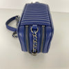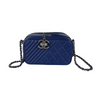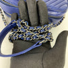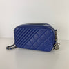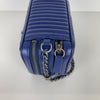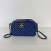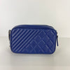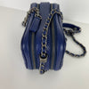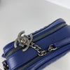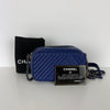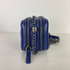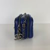 Chanel Mini Coco Boy Camera Case Blue shoulder chain bag in turquoise blue patent leather, ruthenium hardware, inside leather lining, CC dangling zipper. The chain length enables comfortable shoulder wear or can be tucked inside when wearing the bag as a clutch. Perfect for a night out, a party, for lunch, or even to run some quick errands.