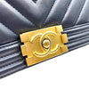 This Boy bag is features a beautiful chevron quilted lambskin body and gold hardware, its an absolute must for any luxury lover. Its beautiful dark blue color makes this a gorgeous statement bag for everyday wear. Our advice? Get this piece before it's too late!