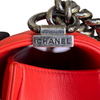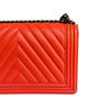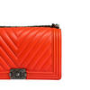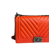 This Chanel Le Boy New Medium bag features a beautiful chevron quilted leather body and ruthenium hardware, which is an absolute must for any luxury lover. Its beautiful coral color makes this a great go-to bag when you need a pop of color.