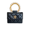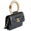 Pearl Bracelet Clutch with Chain Lambskin Black GHW