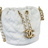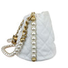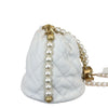Pearl Drawstring Bucket Mini Calfskin Quilted White GHW