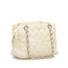 Style: CC Caviar Leather Shopping Tote Bag White
