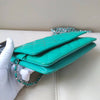 This Chanel Patent Teal Wallet on Chain features a flap enclosure to maximize space and increase security for your items.  Adorned with an iconic Quilted leather, this WOC is a nod to Chanel's classic chic style. Snatch up this rare find for a fraction of retail price!