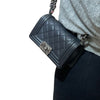 This Chanel Boy in quilted lambskin leather is a rare find. Its small size and classic colour combination make it the most perfect collectible item for any Chanel collector. The interior features a fabric lining with a single interior pocket. The strap is a combination of leather and ruthenium hardware, making it adjustable to your height and comfort. Our advice: don't hesitate on this one!